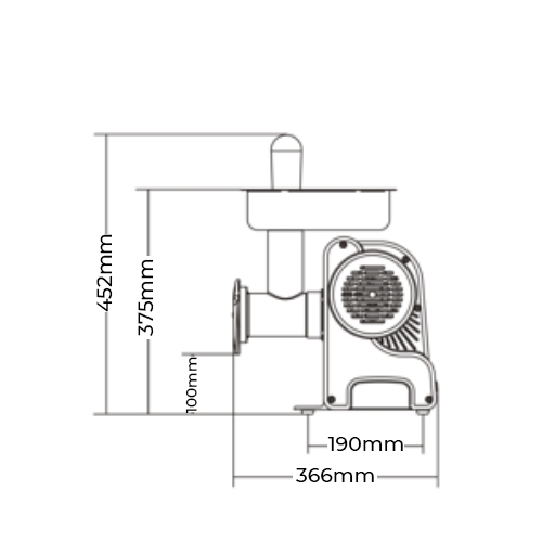 The ventilated motor has a reverse switch which enables the user to free any meat without dismantling the cutting group